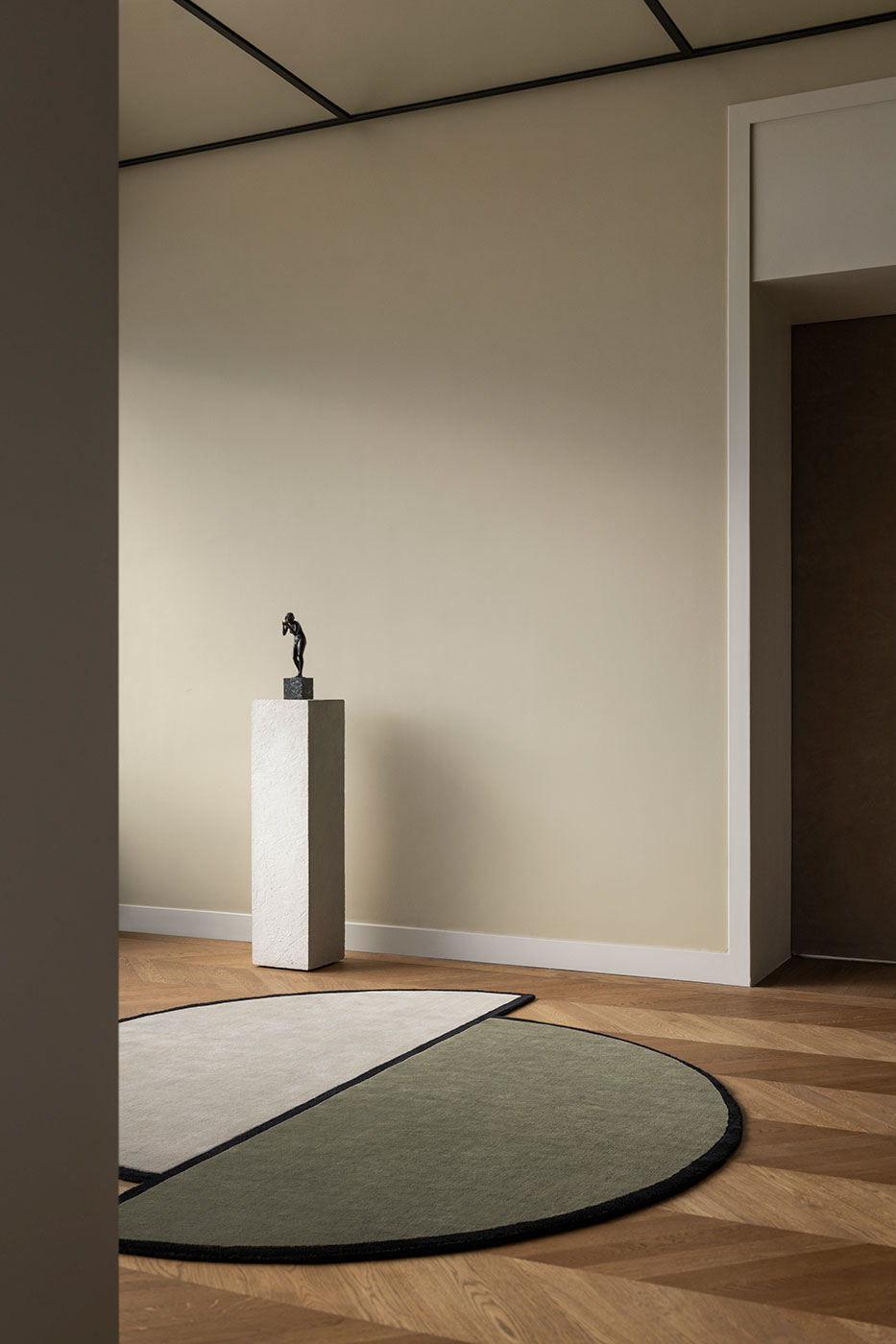 The Nordic Knots AML Collection is designed by Andreas Martin-Löf for his living and work space on Norr Mälarstrand, Stockholm. Inspired by the typical “Norr Mälarstrand” aesthetics where the architecture lies on the border of classicism and modernism. The rugs patterns are based on elements and colors from the buildings in green and a soft greige with black accents. The AML Collection is made in cut pile design and hand loomed, made with 100% New Zealand wool for great quality and a soft feel.