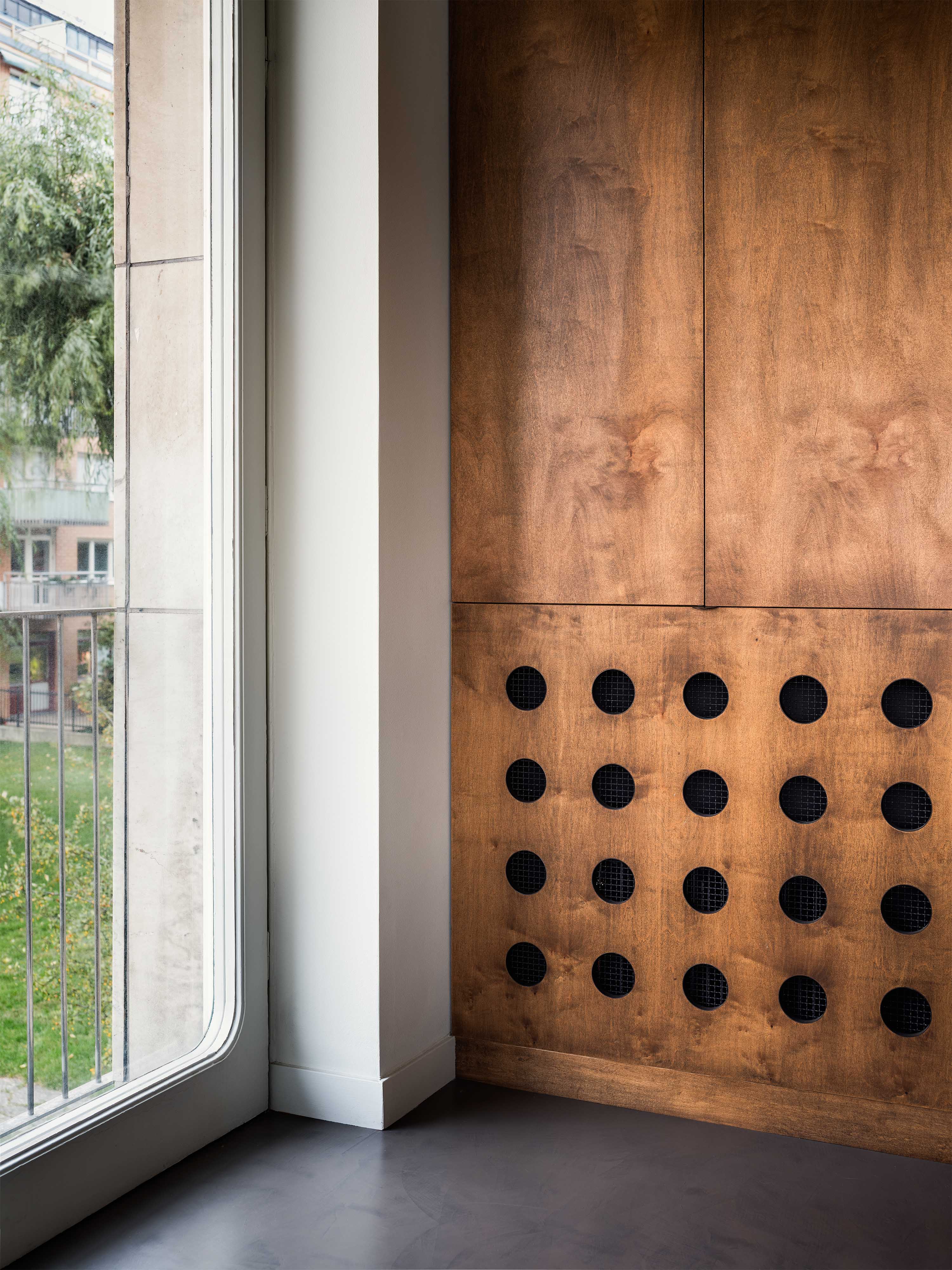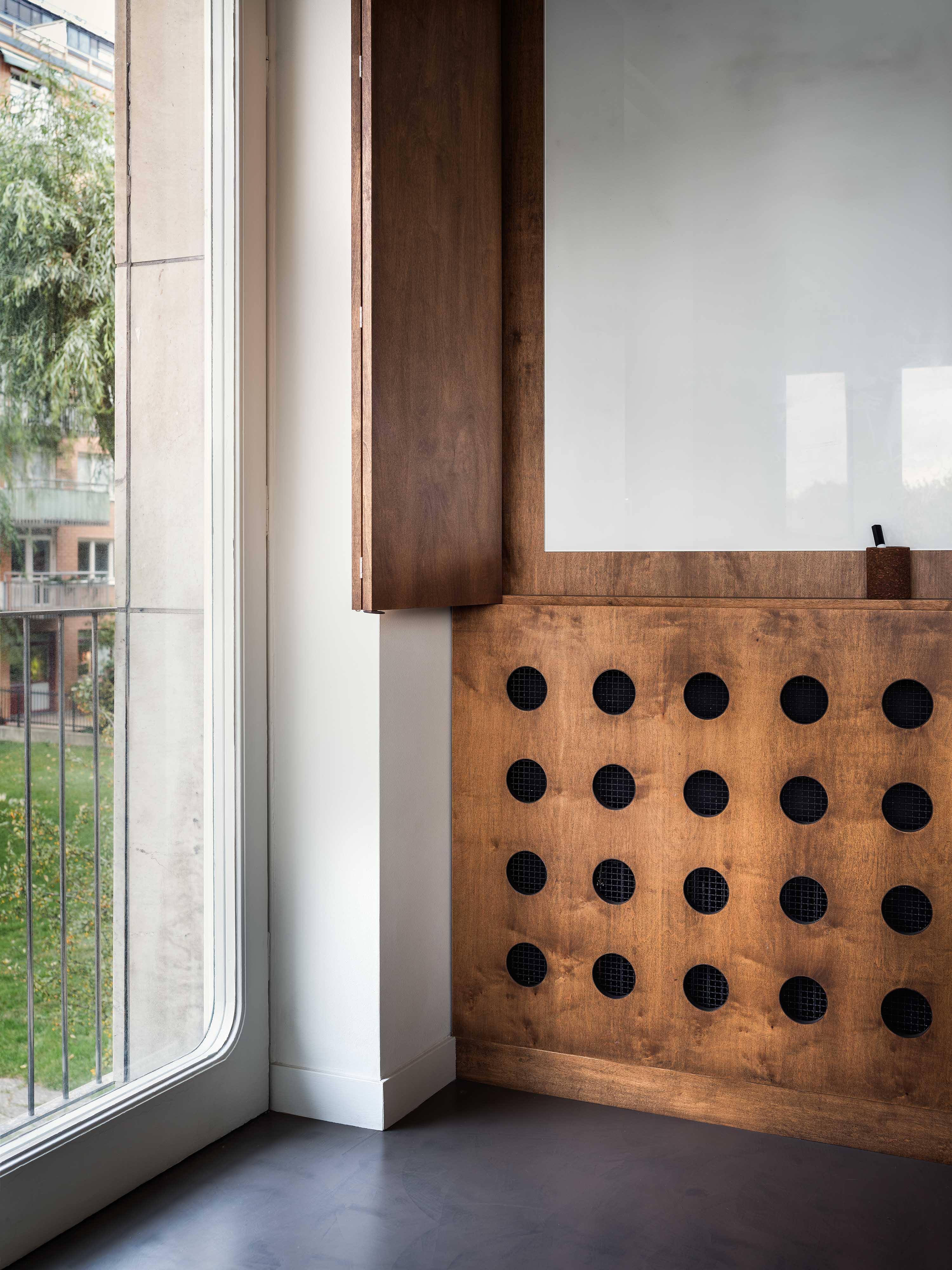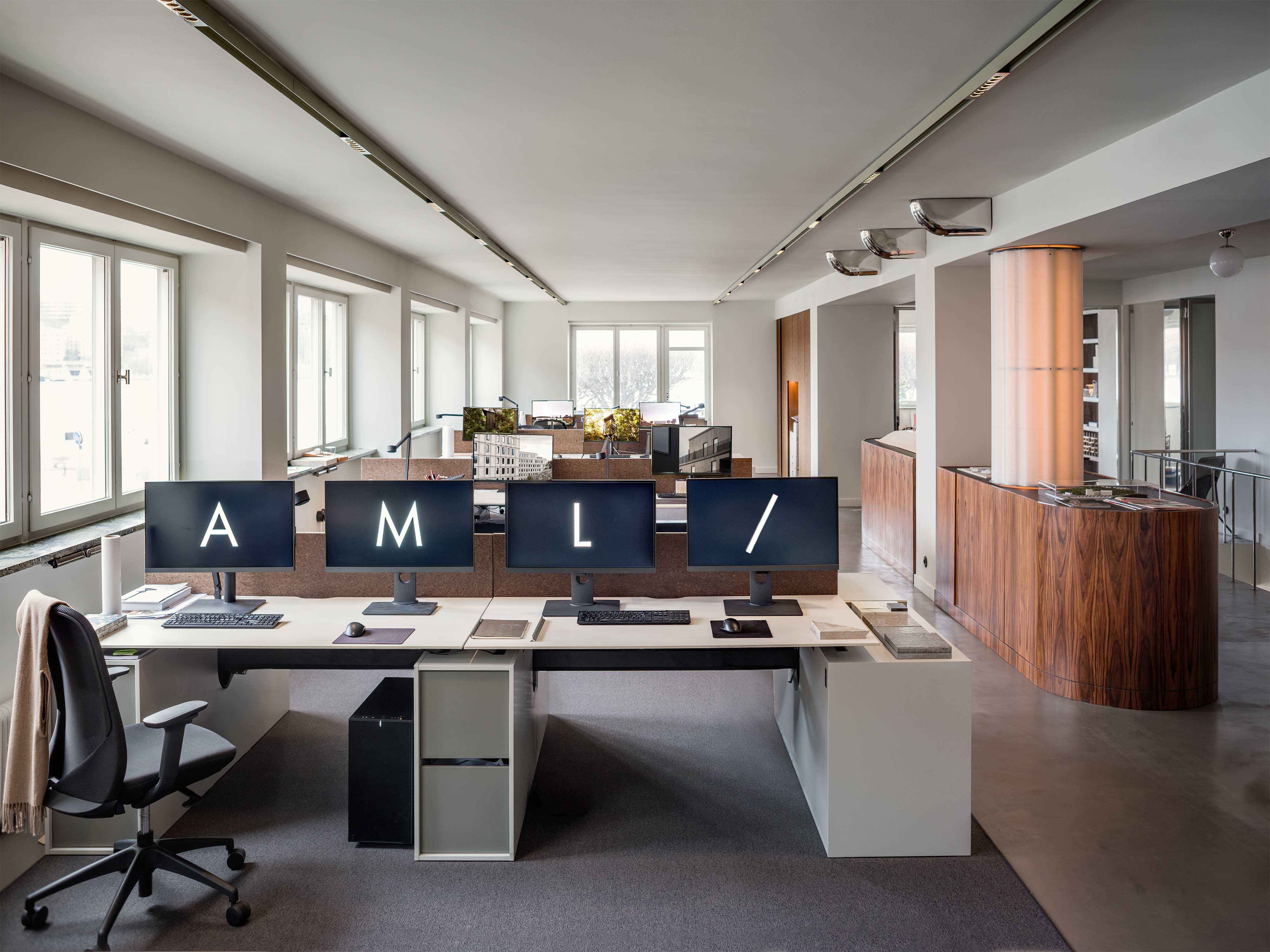 Our practice is committed to the balance between history, innovation and craftsmanship, resulting in spaces that are both functional and imbued with character. The re-designed AML offices are by nature a clear reference to this ethos. From the rounded corners in both walls, kitchen cabinetry and furniture, to the choice of robust interior glass partitions and dual-function radiator covers, the office pays homage to the International Style of the original building and gives it new life.
