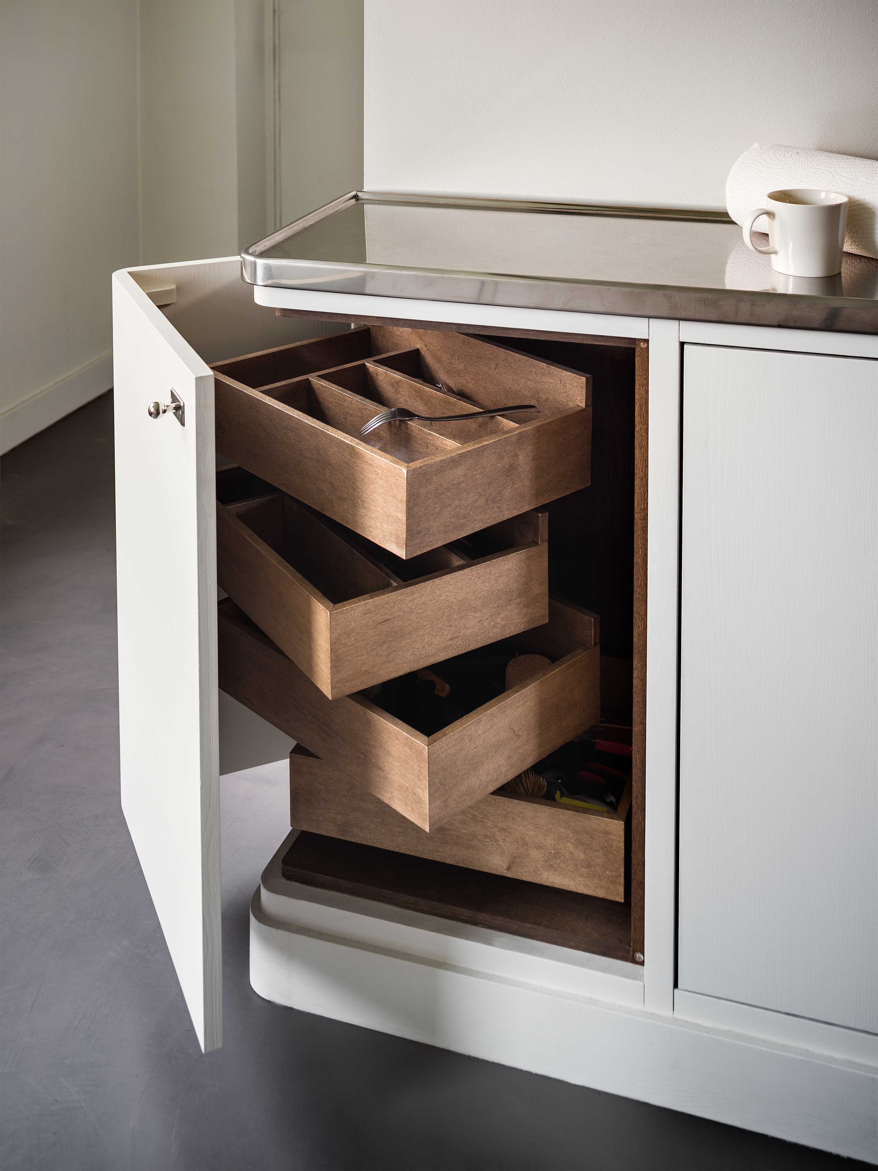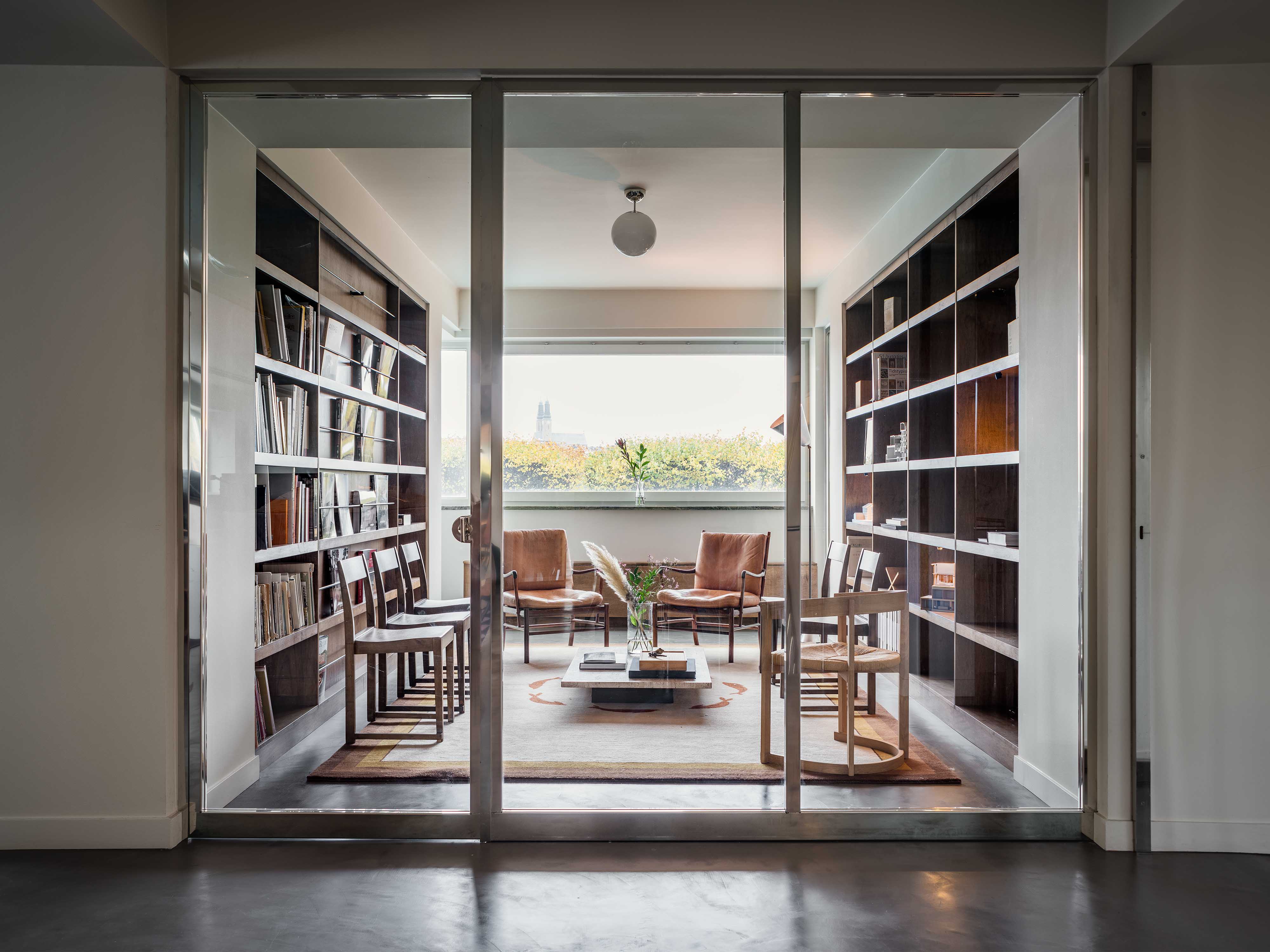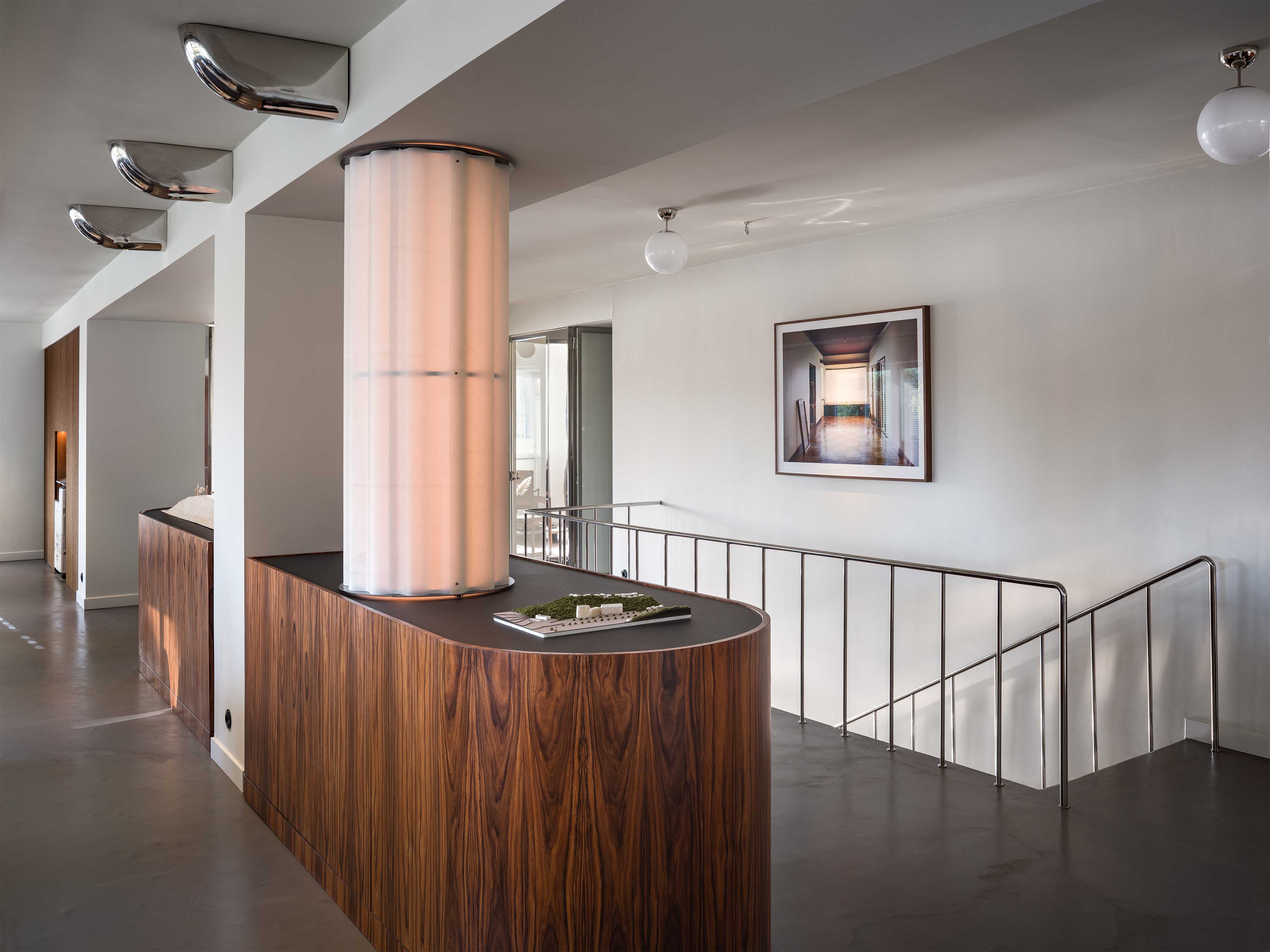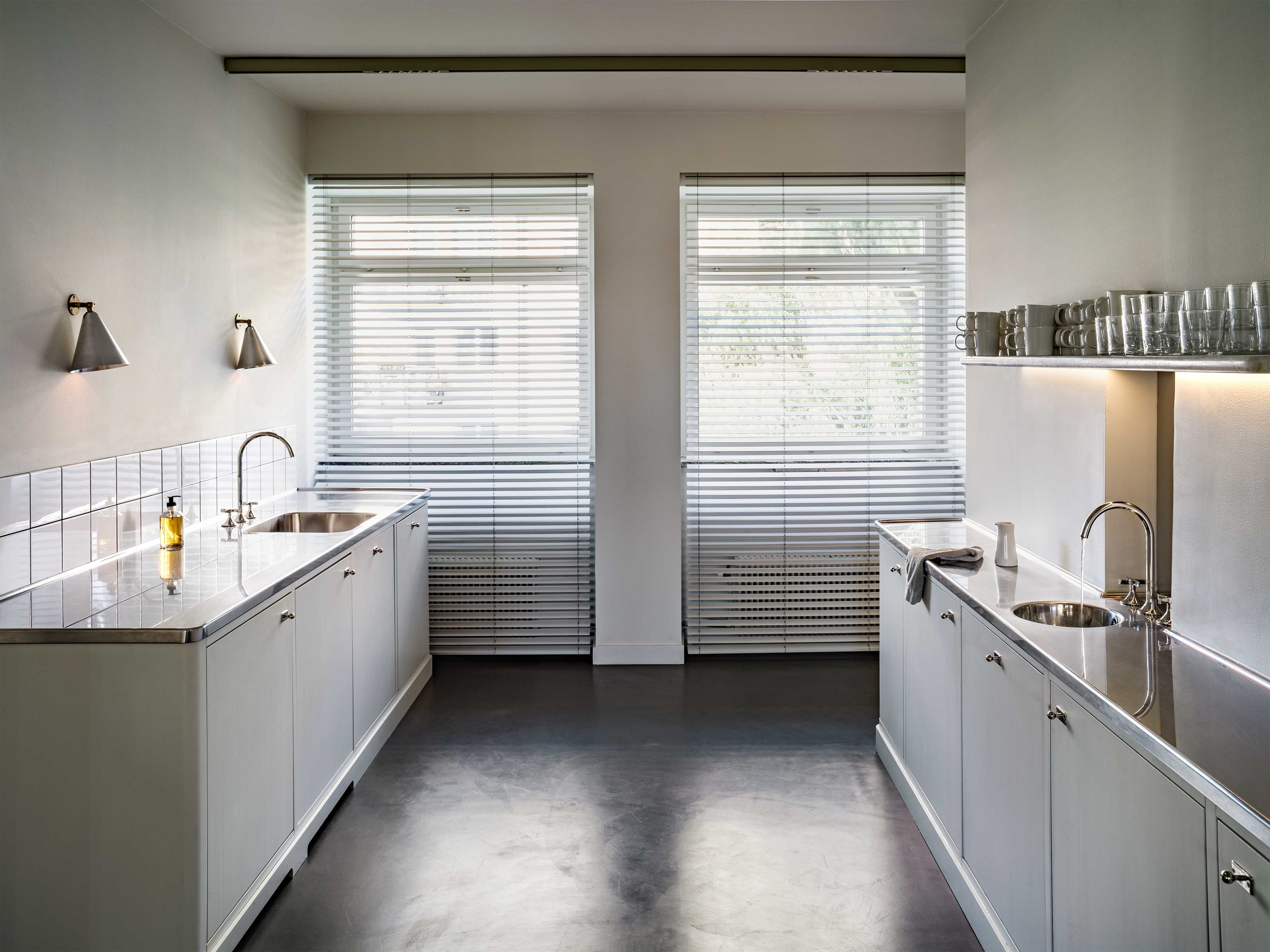 Our practice is committed to the balance between history, innovation and craftsmanship, resulting in spaces that are both functional and imbued with character. The re-designed AML offices are by nature a clear reference to this ethos. From the rounded corners in both walls, kitchen cabinetry and furniture, to the choice of robust interior glass partitions and dual-function radiator covers, the office pays homage to the International Style of the original building and gives it new life.