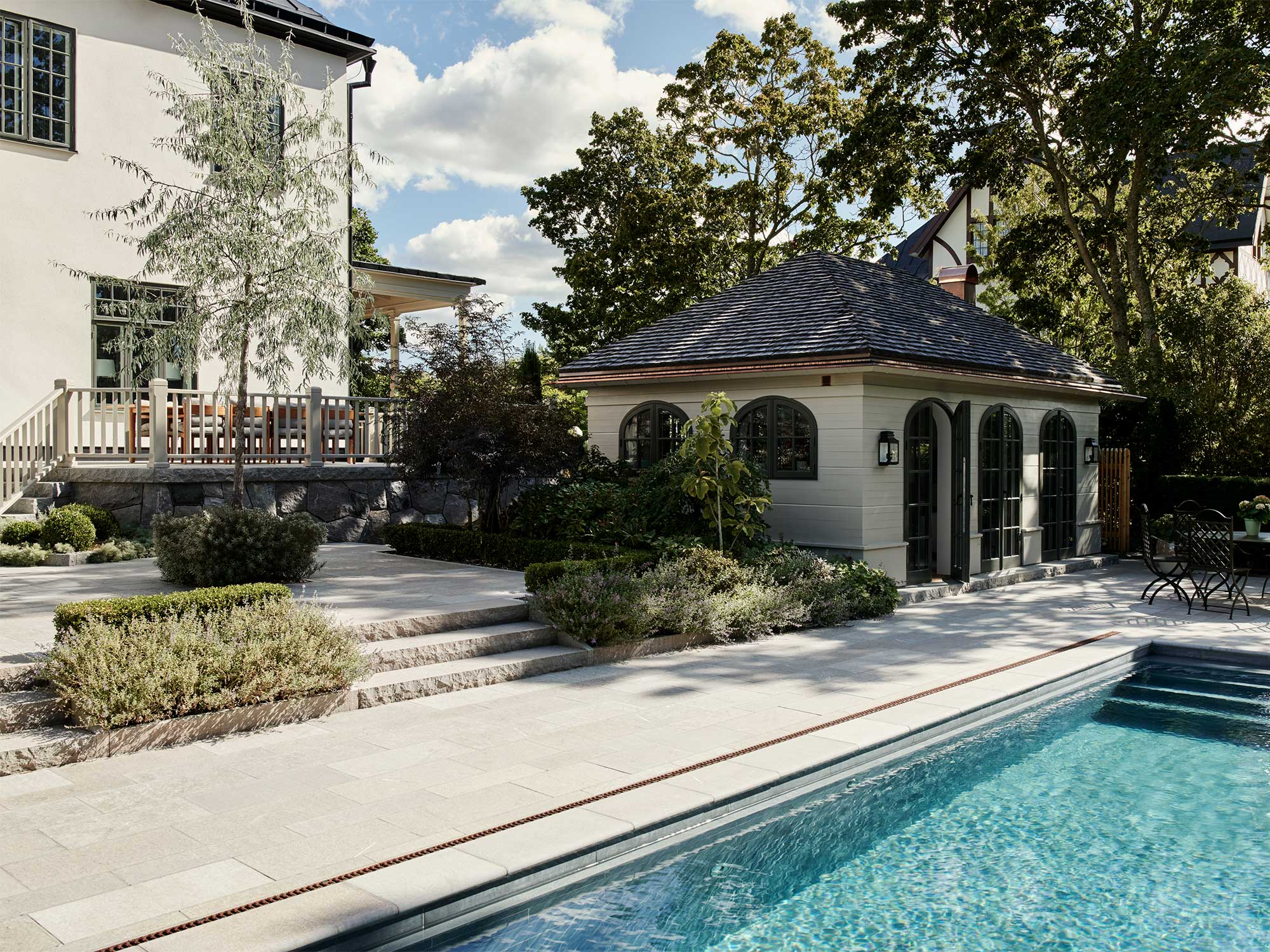 This pre turn of the century villa lies on the slopes of a leafy suburb on the outskirts of Stockholm. The area is known for ambitious residences and almost all well-known Swedish architects have designed houses in the neighbourhood, leading to a rich collection of high-quality villa architecture. Andreas Martin-Löf Arkitekter was commissioned to lead a full renovation of the property including new additions, pool area and garden, during a project that lasted three years.