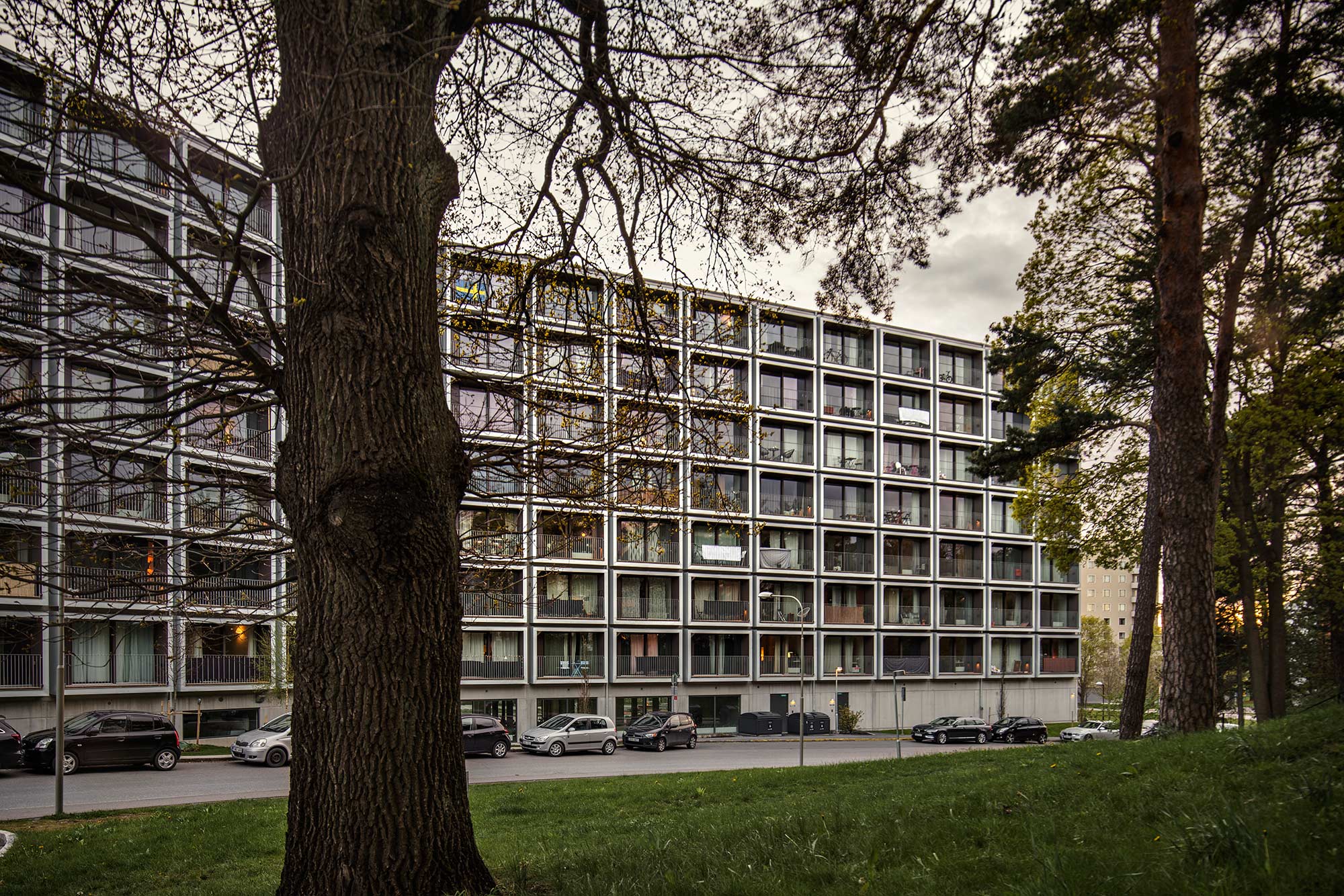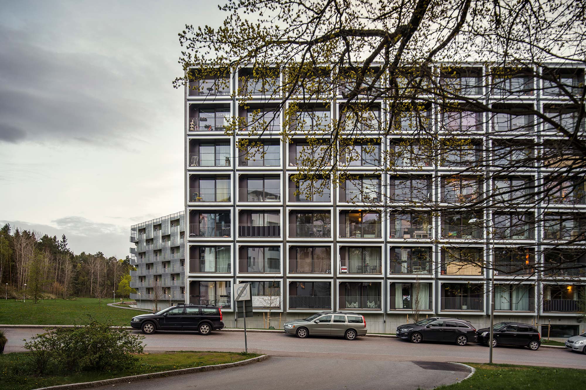 Snabba Hus Råcksta is the second of three Snabba Hus projects that Andreas Martin-Löf Arkitekter has drawn for Svenska Bostäder and developed together with construction company Junior Living. The project is a study in what is possible with complete prefabrication of apartments while at the same time using raw and inexpensive building materials in order to create prize-winning rental apartments for young adults in Stockholm.