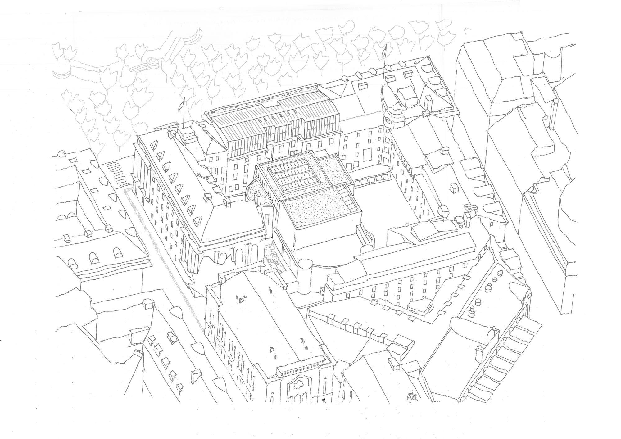 The renovation and extension project of St. Eugenia Catholic Parish was initiated to support the growing number of visitors, activities and services within the congregation. The existing structures – a stately property built at the end of the 19th century facing Kungsträdgården, and a brick church from 1982 – were thoroughly investigated to achieve a proposal attune to the cultural and historical significance of the place.