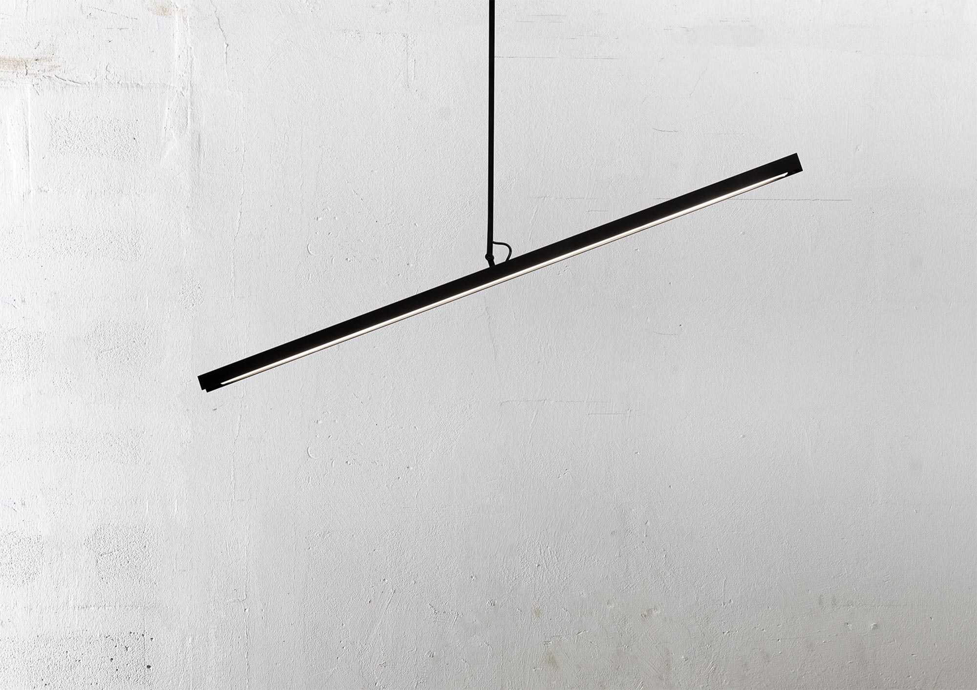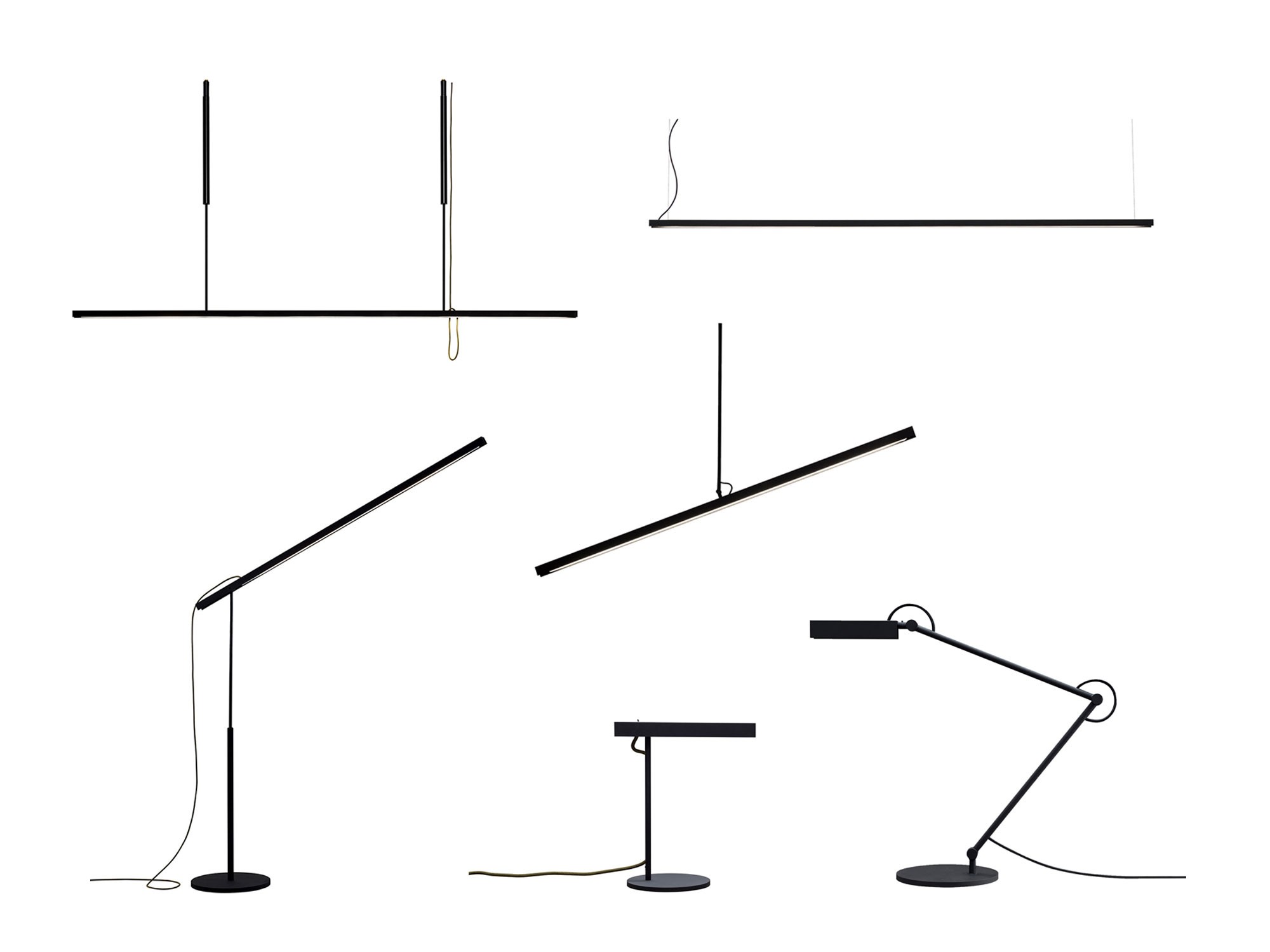 The Standard series is a collection of lighting fixtures designed by Andreas Martin-Löf for Blond Belysning. The lighting series is made of black coated aluminium and designed with inspiration from the UNP beam, normally used as a structural steel in constructions. High efficient LED-modules combined with a familiar and archetypal profile ensures that the lighting fixtures works in modern as well as traditional environments. The Standard series consist of floor- and pendants (wire or fixed installation) and two different table fixtures, Standard table and Standard work. Standard System is the modular contribution to the family, with possibilities of customized expressions.