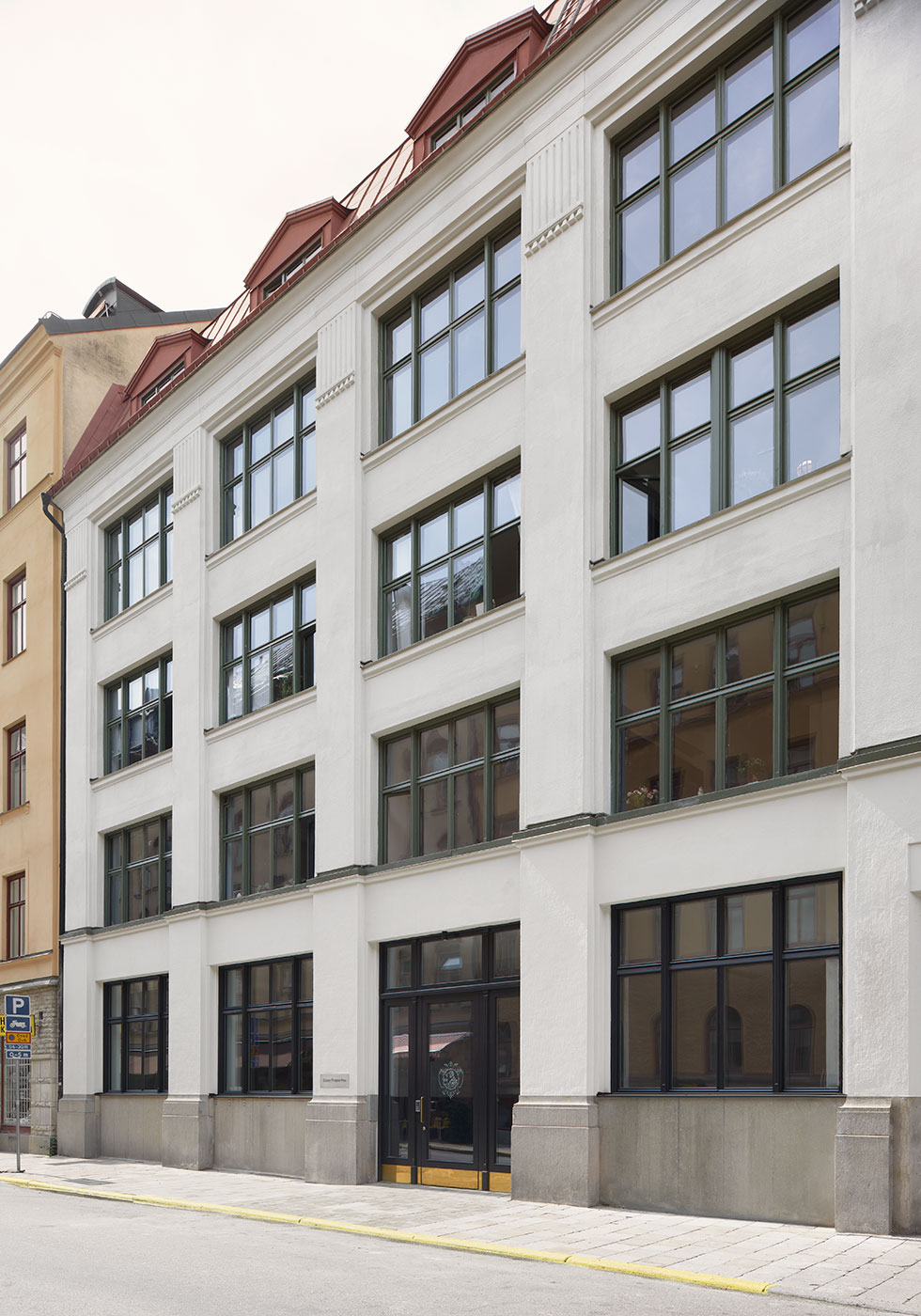 This housing project in a former straw hat factory on Kungsholmen involved the careful renovation of three buildings – each with a different character. The project is guided by respect for the history of the buildings and is comprised of both renovations to existing floor plans and the addition of new floor plan layouts. The existing qualities, peculiarities and characters of the buildings are retained and complimented with elegant free-standing kitchens, carefully detailed carpentry, balconies and terraces.