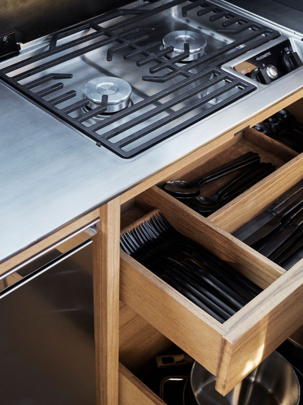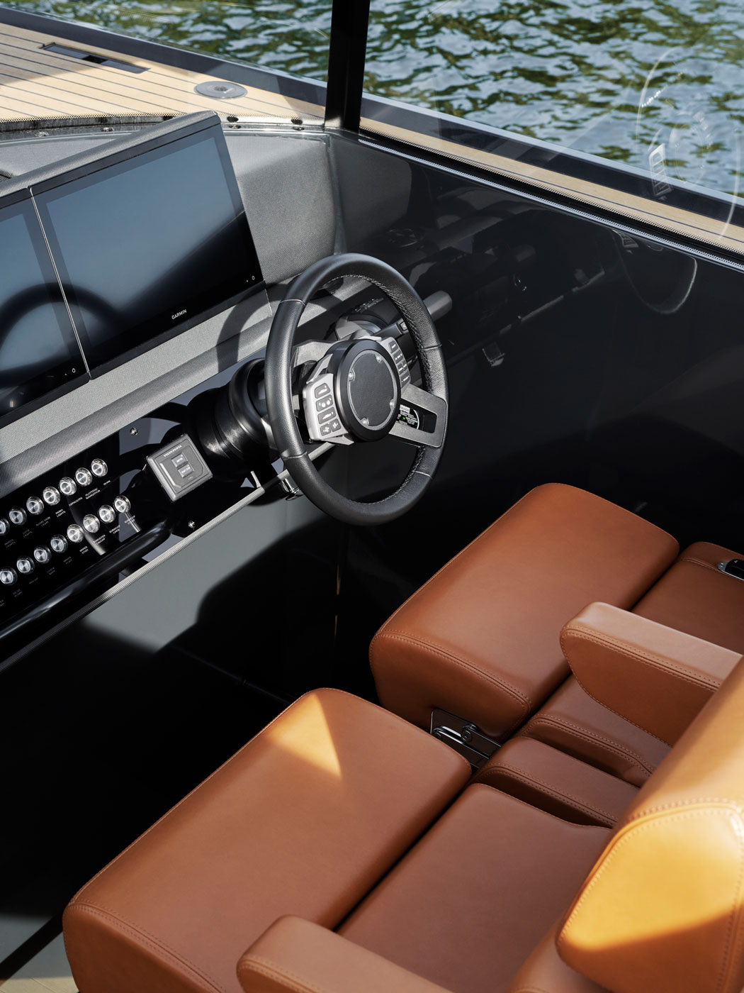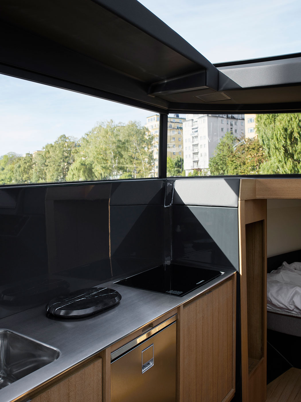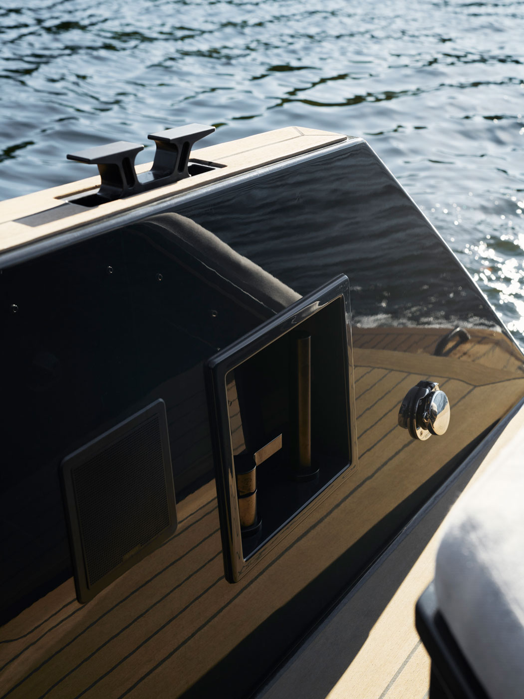 For the first time, with the design of DAHL 36, Andreas Martin-Löf Arkitekter ventured outside the world of architecture and furniture, to tackle the challenges of naval design. The project was initiated due to the office’s relocation to Norr Mälarstrand in Stockholm and its proximity to Riddarfjärdens Marina. A hull of set dimensions, 11 meters long and 3.2 meters wide, designed by Ted Mannerfelt provided the parameters for the boat and the project itself. The brief was for Andreas Martin-Löf Arkitekter to consult on the exterior expression and fully develop the interior concept.