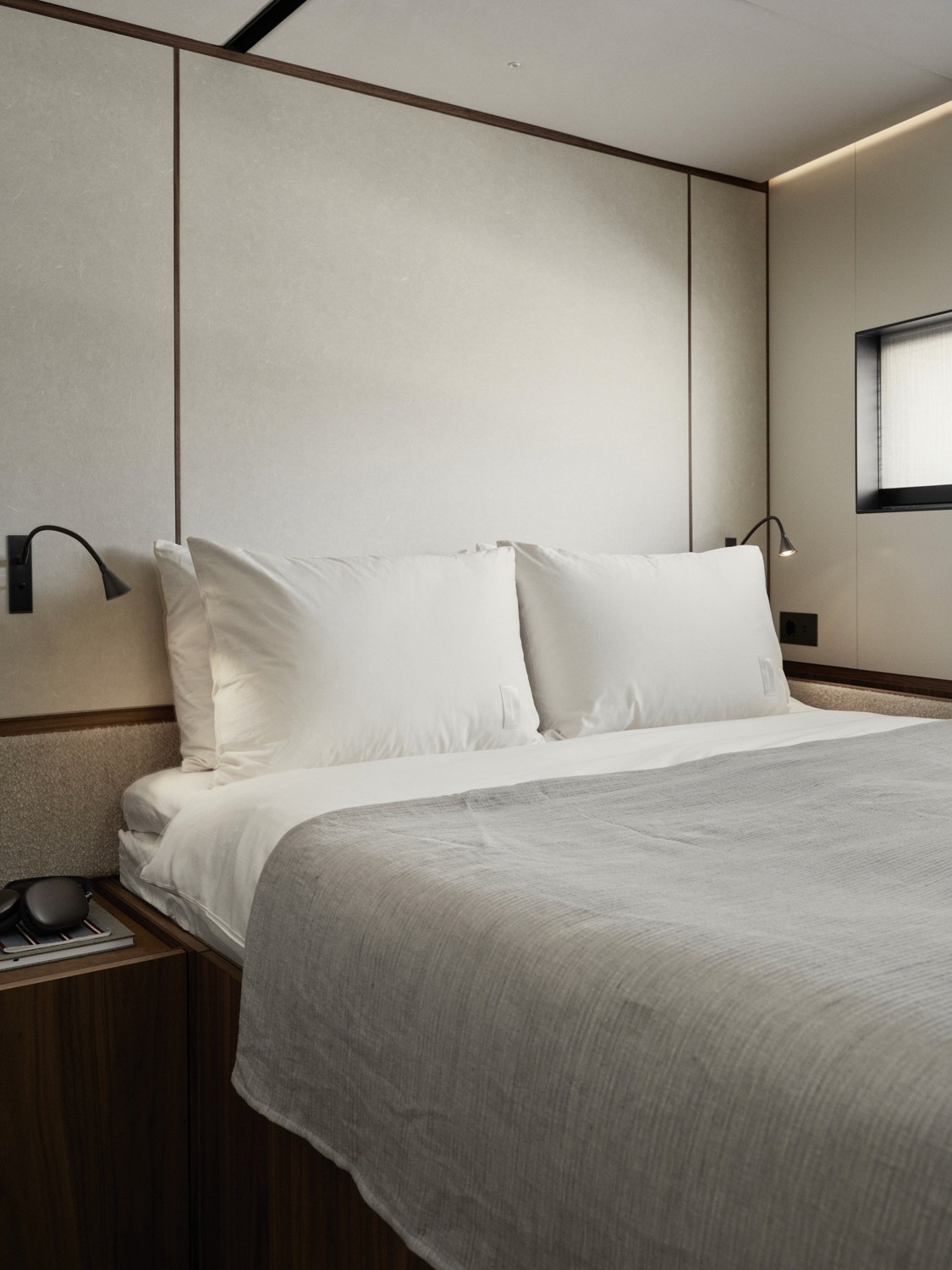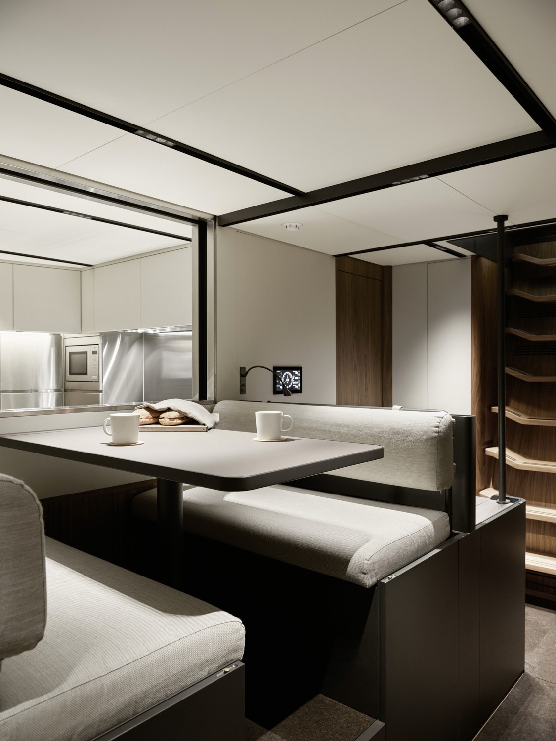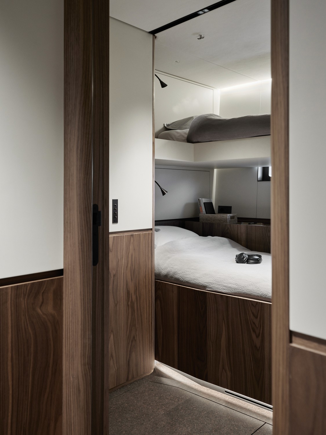 The 33,5m ZEMI is an all-carbon cruising yacht custom developed for a highly experienced and knowledgeable owning family and is designed for long distance global voyaging. Andreas Martin-Löf Arkitekter has been responsible for the interior design and the exterior styling. Together with the boat’s naval architect, Malcolm McKeon, and later with Baltic Yachts, in the course of three years, the project developed from a design brief and an empty sheet of paper to completed reality. A sailing yacht of this type is an extraordinarily complex vessel in which the interior features can almost be fully dismantled, and which is made entirely of light-weight materials. Given this aspect, AML Arkitekter had a strong will to create a sense of permanence, calm, and craft excellence.